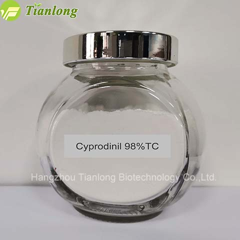 Cyprodinil can inhibit the biosynthesis and hydrolase activity of methionine in the cells of pathogenic bacteria, interfere with the life cycle of fungi, inhibit the penetration of pathogens, and destroy the growth of mycelium in plants.