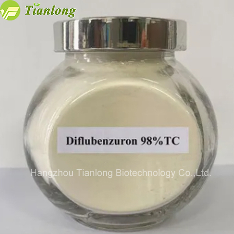 Diflubenzuron is benzoyl urea insecticide, has stomach toxicity and contact. The mechanism is that by inhibiting the synthesis of insect chitin synthetase, the synthesis of chitin in the epidermis of larvae, eggs and pupae is inhibited, so that insects can not die of normal molting body deformity.