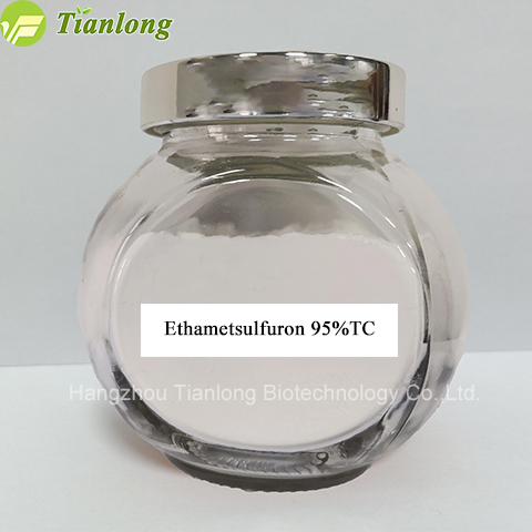 Ethametsulfuron is a selective systemic and conductive wheat field herbicide. After being absorbed by the roots and leaves of the weeds, it conducts quickly in the plant body, and can conduct to the top and the base. The growth of the root and the top of the new shoot is quickly inhibited within a few hours, and the plant dies in 3-14 days.