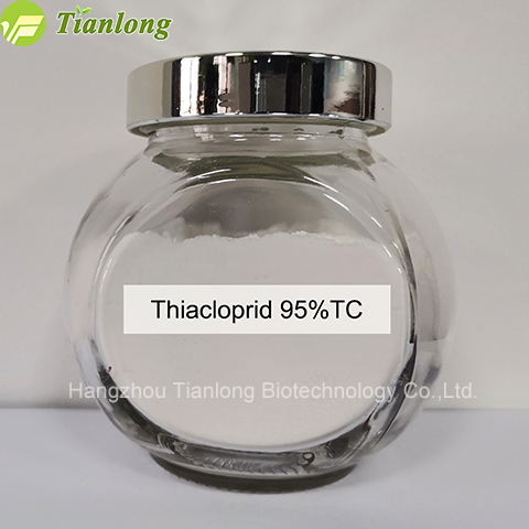 Thiacloprid mainly act on the insect nerve junction after the membrane, through binding to the nicotinylcholine receptor, interfering with the normal conduction of the insect nervous system, causing the blockage of the nerve channel, resulting in a large accumulation of acetylcholine, so that the insect is abnormally excited, spasm, paralysis and death.
